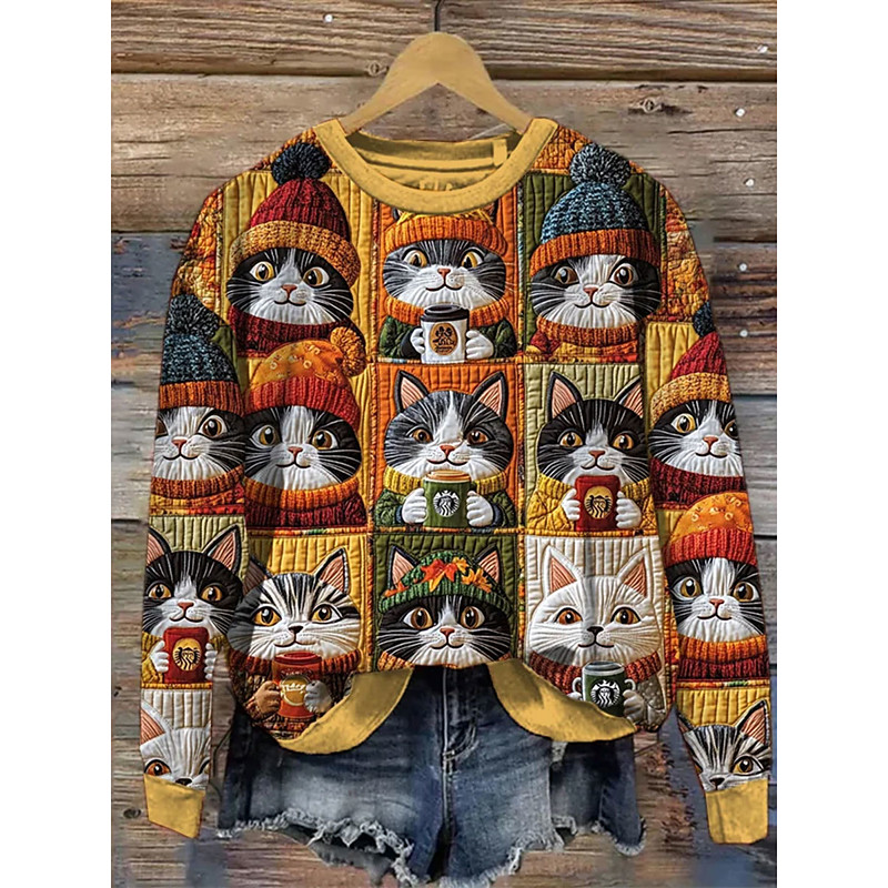 Women's Pullover Sweatshirt Graphic Animal Casual Long Sleeve Crew Neck Round Neck Regular Tops Casual Street Dailywear Yellow Red Green Fall Winter