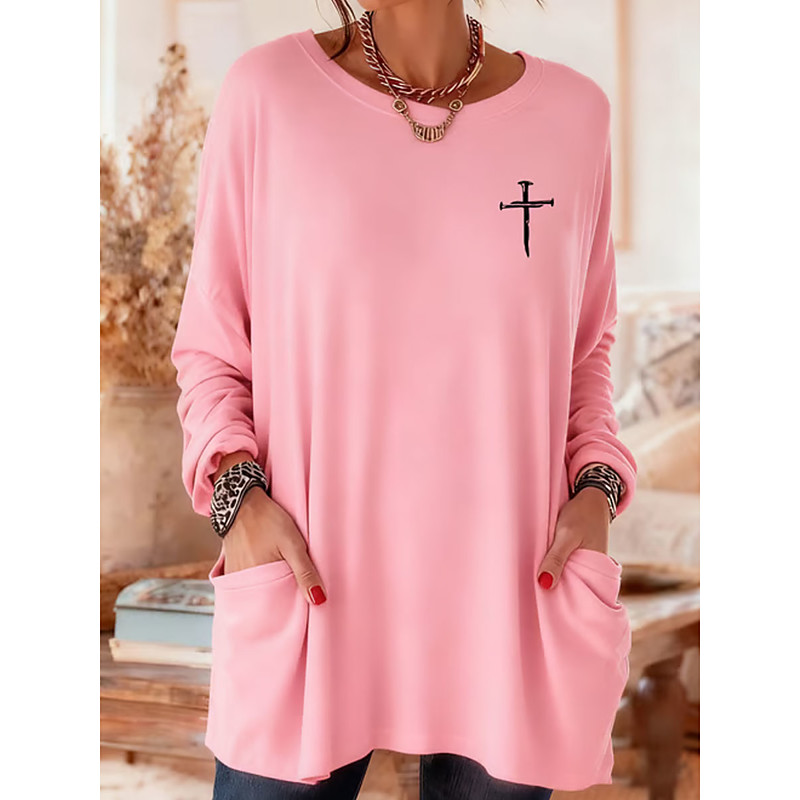 Women's T Shirt Graphic Letter Vintage Fashion Stylish Long Sleeve Crew Neck Regular Tops Daily Going out Weekend Pocket Print Black Pink Red Green Beige Spring Fall Winter