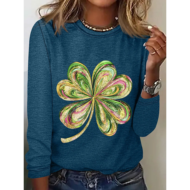 St. Patrick's Day Women's T Shirt Shamrock Stylish Classic Casual Long Sleeve Crew Neck Regular Tops Daily Print Blue Black White Khaki Spring Fall