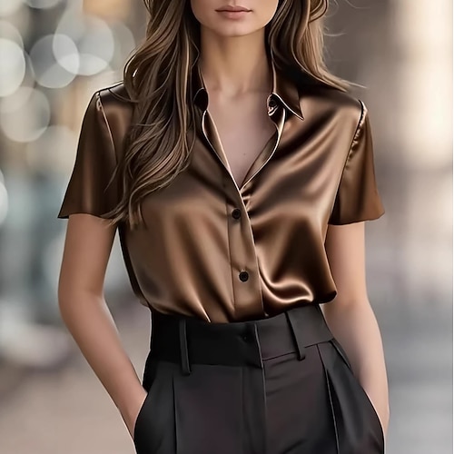 Per donna Camicia elegante Camicia button-down Camicia da lavoro Top estivi Elegante Essenziale Manica Corta Top Regolari Quotidiano Ufficio Lavoro Nero Bianco Marrone Verde Estate Primavera