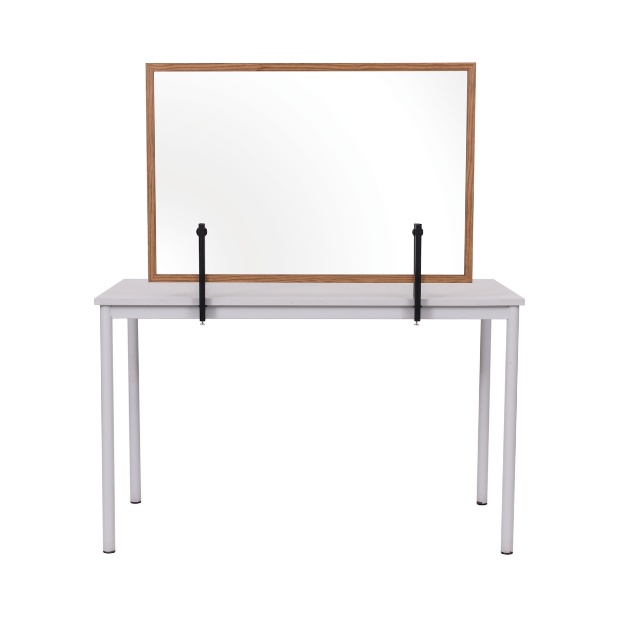 Bi-Office Trennwand, Spritzschutz Glastafel mit Metallklammern zum Befestigen am Tisch, mit 2,2 cm breitem Holzrahmen, 120 x 90 cm