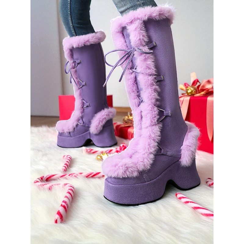 Women's Platform Christmas Boots with Faux Fur Trim - Chic Holiday Style, Perfect for Christmas Parties and Winter Celebrations