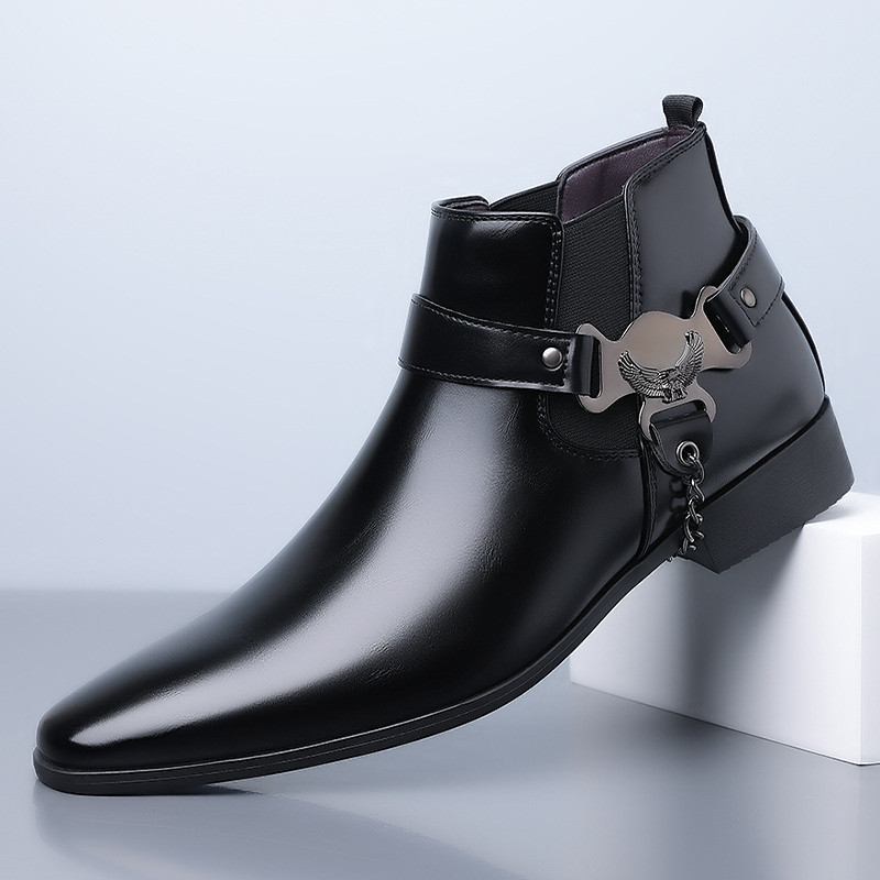 Men's Faux Leather Ankle Boots with Side Zip - Sleek Formal Dress Boots for Office and Special Occasions