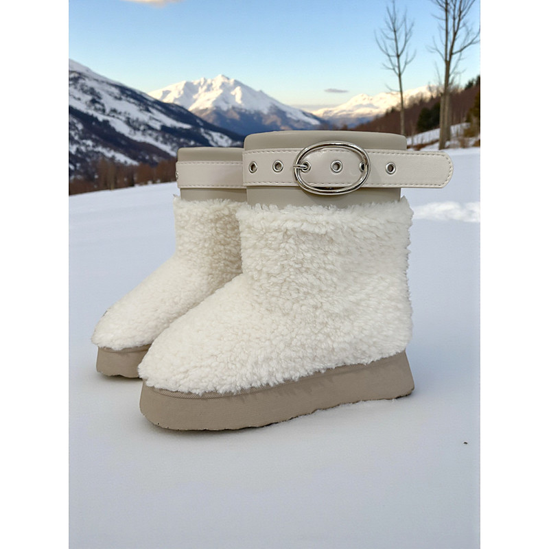 Women's Cozy Faux Fur Snow Boots – Stylish Brown Platform Booties with Belt Detail, Comfortable and Warm for Cold Weather, Outdoor and Casual Wear