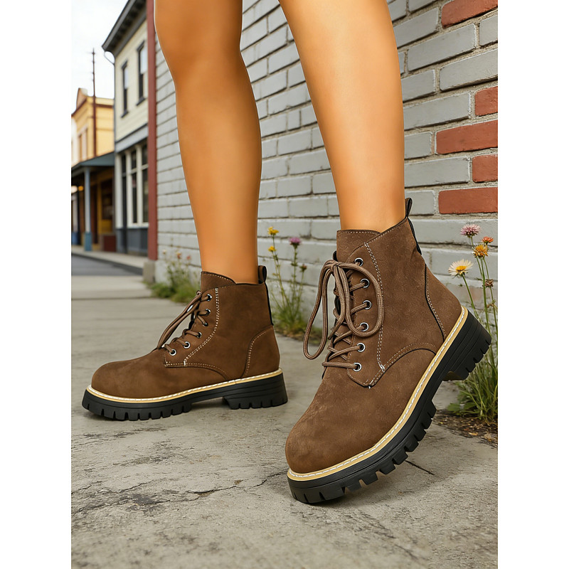 Women's Green Faux Suede Combat Ankle Boots - Lace-Up Chunky Sole Casual Boots, Ideal for St. Patrick's Day Celebrations, Market Outings, Casual Festivals Daily Errands