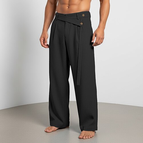 Per uomo Pantaloni di Lino Pantaloni Pantaloni Estivi Tasca Frontale Pieghe Gamba Dritta Semplice Comodità Traspirante Casuale Quotidiano Ferie Moda Essenziale Nero Bianco