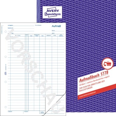 Avery Zweckform Aufmaßbuch 1778 DIN A4 50Blatt