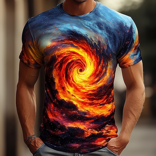 Herren Optische Täuschung Universum 3D T Shirt Kurzarm T-Shirt 3D-Druck Rundhalsausschnitt Hemd Übertrieben Designer Party Straße Lässig Blau 3# Blau 2# Blau 1# Sommer Frühling Ganzjahres Bekleidung