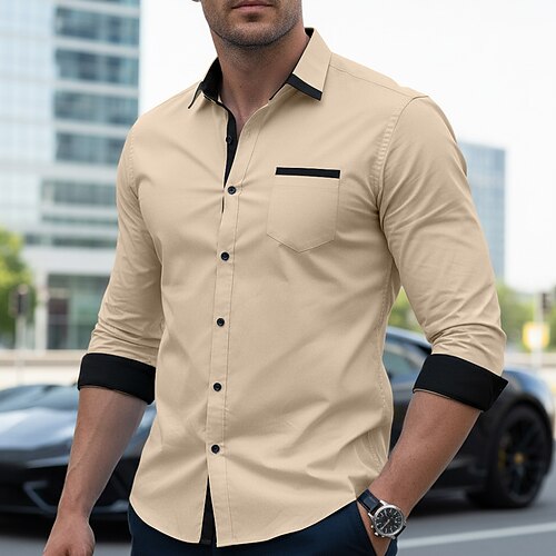 Per uomo Camicia Camicia elegante Camicia button-down Camicia non stiro Camicia con Bottoni Blocco di colori Quotidiano Matrimonio Blu chiaro Nero Bianco Verde chiaro Manica Lunga Collo ripiegato