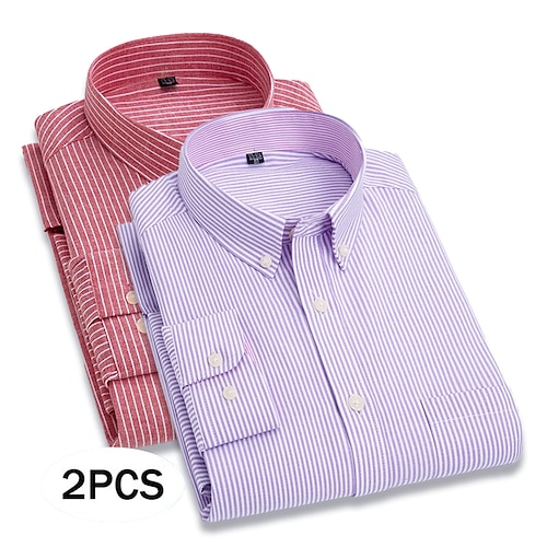 Per uomo Camicia Camicia elegante Camicia button-down Camicia Oxford A righe Quotidiano Affari BluBlu chiaro Rosso grigio Azzurro grigio Viola Blu Manica Lunga Collo ripiegato Tutte le stagioni