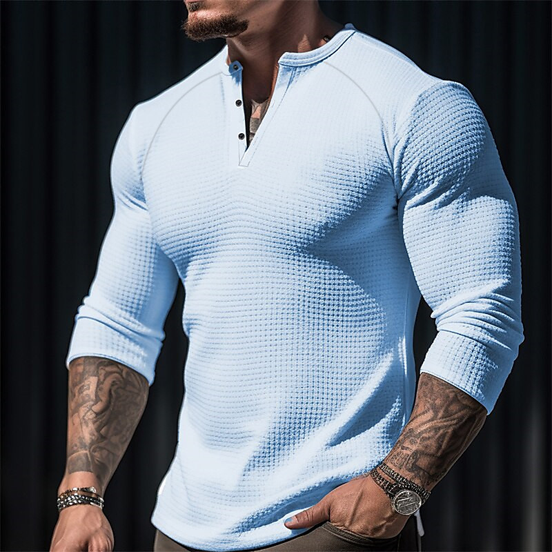 Men's T shirt Tee Waffle Henley Shirt Henley Shirt Tee Top Long Sleeve Shirt Plain Henley Street Vacation Long Sleeve Clothing Apparel Fashion Designer Basic