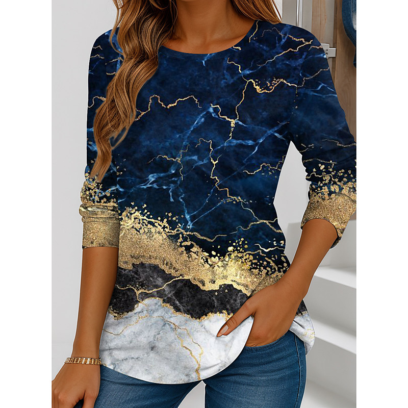 Women's T shirt Long Sleeve Crew Neck Long Sleeve Tunic Ombre Marble Elegant Vintage Regular Tops Daily Going out Weekend Print Black White Pink Navy Blue Blue Prefall