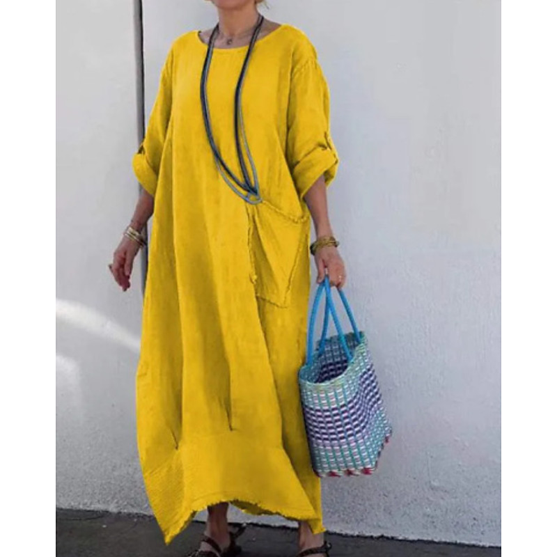 Women's Long Dress Maxi Dress Cotton Blend Casual Dress Fashion Modern Outdoor Vacation Holiday Regular Fit Plain Long Sleeve Crew Neck Blue White Yellow Pink Fall
