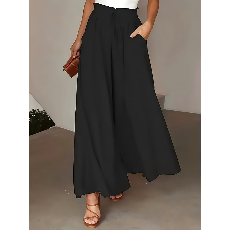 Women's Wide Leg Pants Trousers Vacation Vintage Ethnic Style Full Length High Waist Solid Color Plain Inelastic Black Royal Blue color khaki Summer Spring Fall Winter Loose Fit