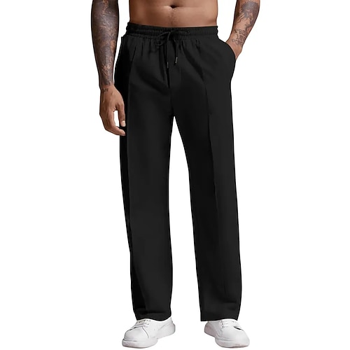 Herren Jogginghose Hose Gerade geschnittene Sweatpants Faltenhose Kordelzug Tasche Elastischer Bund Einfach Komfort Sport im Freien Täglich Mode Lässig Schwarz Mikroelastisch