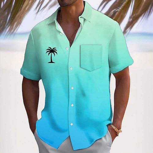 Per uomo Albero di Cocco Colore sfumato Piante Tropicali Camicia hawaiana estiva Camicia con Bottoni Camicia Aloha Manica Corta Hawaiano Casuale Vacanza Estate Primavera Collo ripiegato Stampa 3D