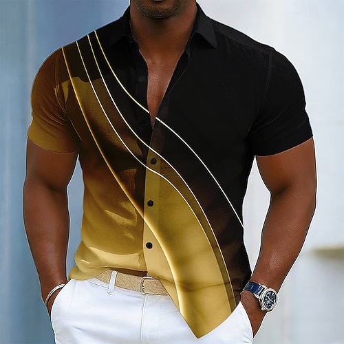 Herren Geometrisch Linien / Wellen Farbverlauf Hemd Knopfhemd Kurzarm Modisch lässig Täglich Outdoor Urlaub Sommer Frühling Umlegekragen 3D-Druck Leinenähnliches Hemd Blau Gelb Rote Purpur Grün