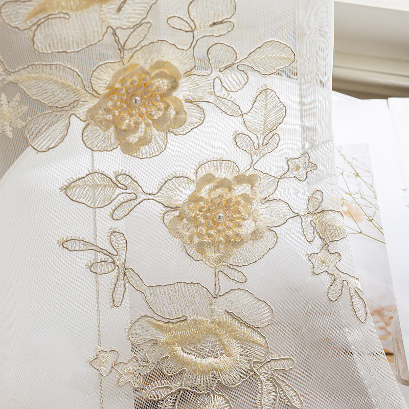 French Lace Embroidered Curtains, Bedroom Sheer Tulle Curtains, Rod Pocket Window Curtains, 2 Panels Curtains