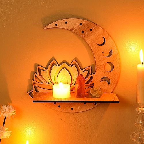 mensola decorativa a forma di luna di loto in legno, a forma di cava, per montaggio fai da te, mensola galleggiante, ideale per decorazioni murali in camere da letto, ripostigli e piccoli oggetti
