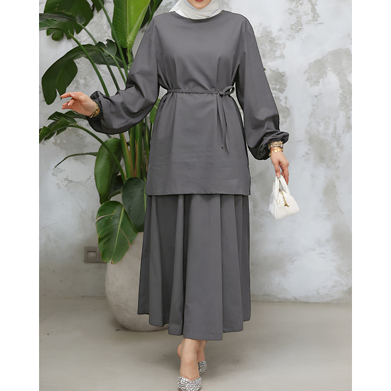 Women's Fashion Streetwear Skirt Sets Bolero Top Long Sleeve Crew Neck Plain Daily Outdoor Work Black Purple Brown Spring Loose Fit