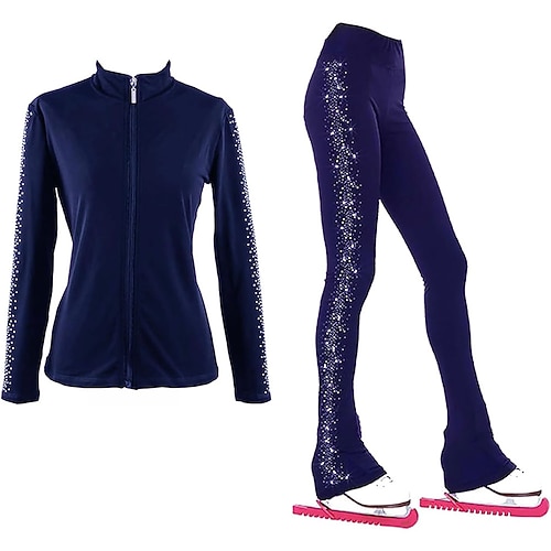 giacca da pattinaggio artistico con pantaloni, abbigliamento da pattinaggio sul ghiaccio da donna e da ragazza, nero, elastico, abbigliamento da pattinaggio per competizione, termico, caldo, con