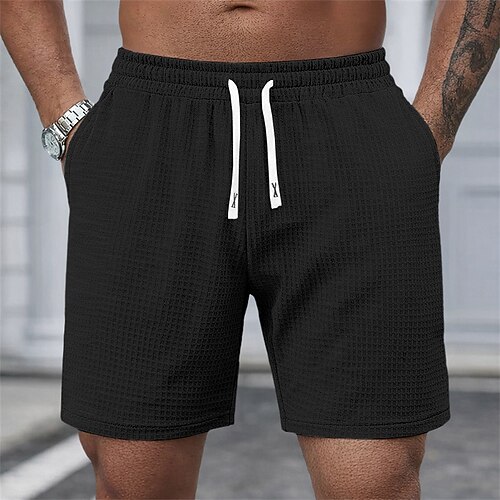 Per uomo Pantaloncini Waffle Shorts Pantaloncini casual Testurizzato Semplice Comodità Traspirante Lunghezza al ginocchio Casuale Quotidiano All'aperto Vacanza Moda Nero Bianco Micro-elastico