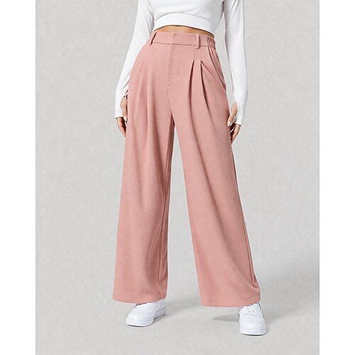 Per donna Nido d'ape Gamba larga Chinos Vacanza Lunghezza intera Vita Alta Comodità Micro-elastico Quotidiano Blu Verde translucido Aalbicocca Nero Primavera Vestibilità comoda