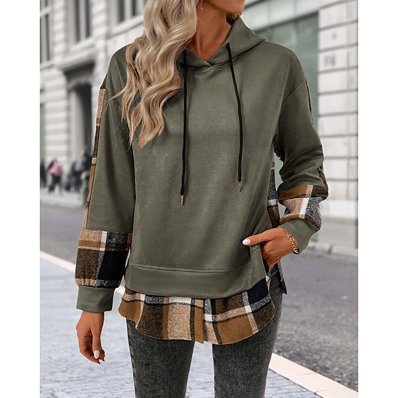Women's Pullover Hoodie Sweatshirt Plaid Vintage Casual Long Sleeve Hooded Regular Tops Street Casual Sports Drawstring Patchwork Pink Army Green Dark Gray Beige Coffee Fall Winter