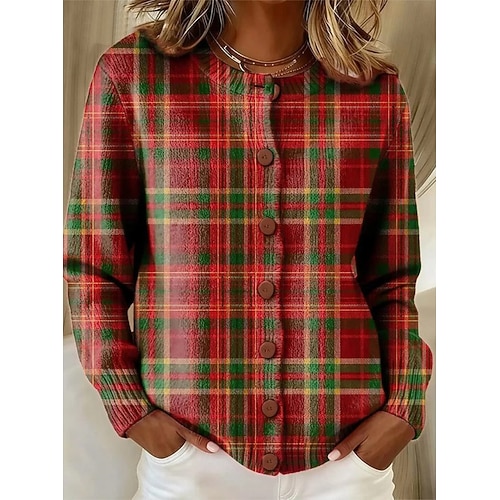 Per donna Cardigan Moda Quotidiano Casual Grafico Plaid A Coste Girocollo Floreale Bottoni Stampato Manica Lunga Top Regolari Maglia Quotidiano All'aperto Data Blu Rosso Autunno Inverno