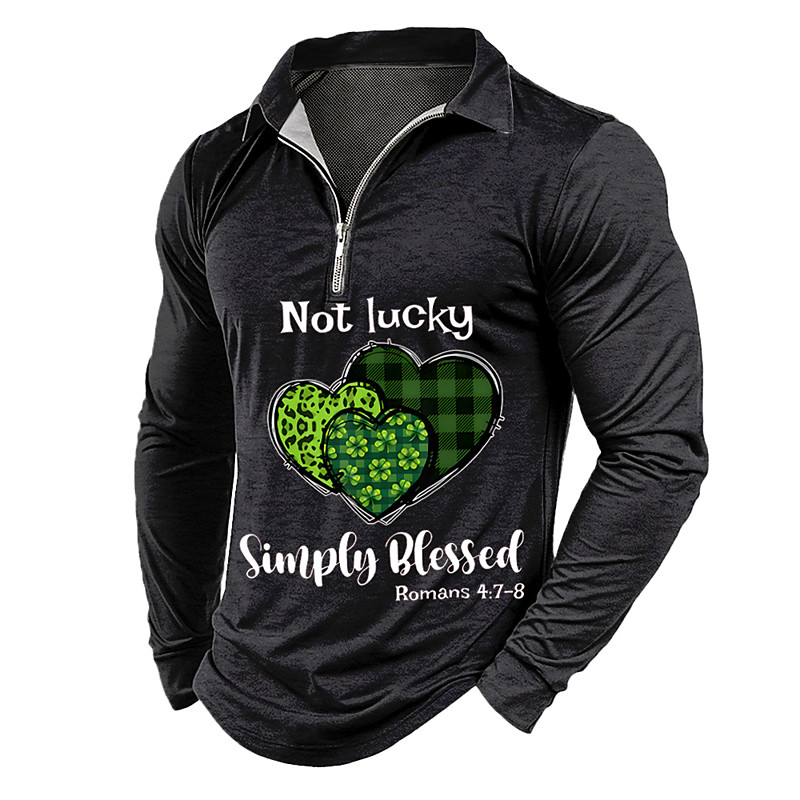 St. Patrick Men's Four Leaf Clover Polo Long Sleeve Polo Shirts Lapel Casual Daily Wear Festival Wear 3D Print Quarter Zip Polo Spring Fall Winter Black Red Green