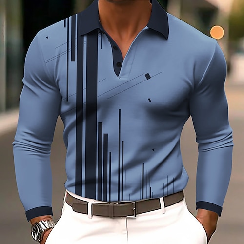 Herren Geometrisch Polo Langarm Polo-Shirts Hemden mit Kragen Lässig Outdoor Athleisure 3D-Druck Frühling Herbst Winter Blau Braun Armeegrün