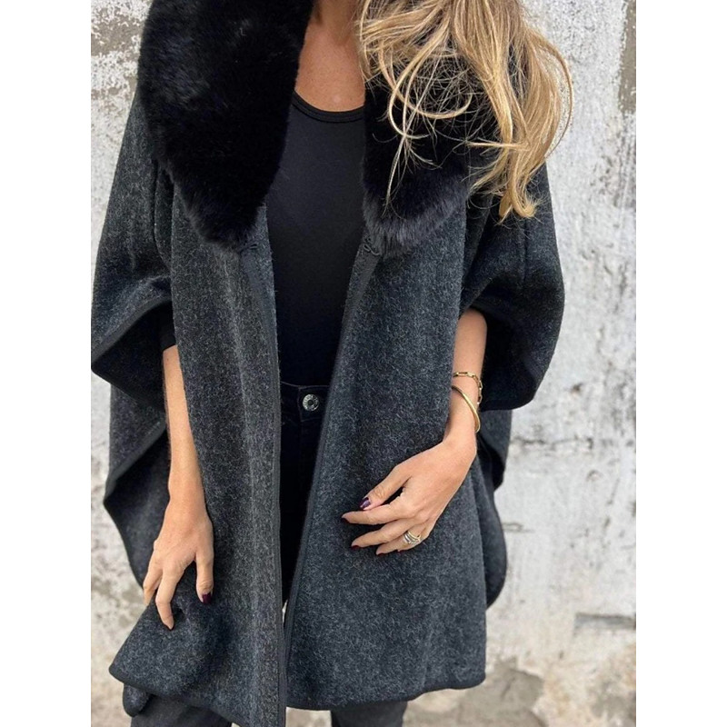 Women's Cloak / Capes Outdoor Street Daily Fall Winter Regular Coat Regular Fit Warm Breathable Comtemporary Stylish Jacket 3/4 Length Sleeve Solid Color Fur Collar Black Khaki Gray
