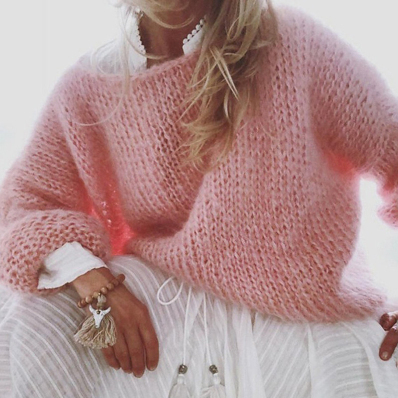 Women's Sweater Pullover Streetwear Casual Solid Color Boat Neck Knitted Long Sleeve Regular Tops Knit Daily Holiday Going out White Pink Fall Winter