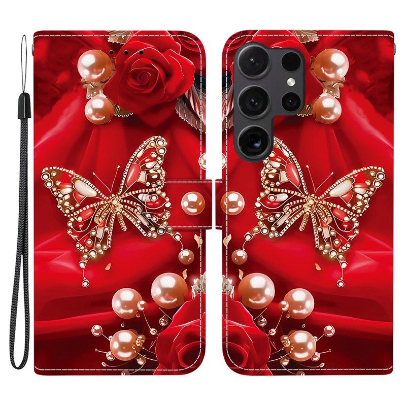 Plånboksfodral för Samsung Galaxy S26 Ultra Konstläder Stativ Pärlbutterfly Rosa