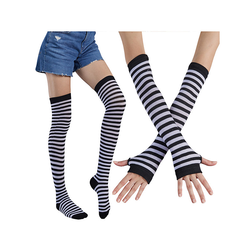 Women's Striped Knee-High Socks and Gloves Sets, Multiple Colors, Fun Colorful Design, Perfect for Carnival Masquerade Balls