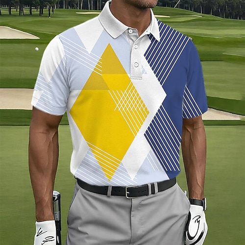 Per uomo Geometrico Golf Polo Sportivi Manica Corta Magliette polo Camicie con Colletto Casual Athleisure Bottoni Primavera Estate Blu Viola Verde