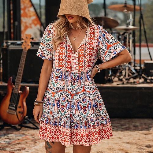 Stile Boho Retrò Vintage Boho Vestito Maniche corte Stile Boho Costume Per donna Mascherata Festival Musicale Festa a tema retrò Adulti Vestito Estate