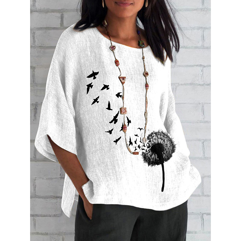 Women's Shirt Graphic Daily Casual 3/4 Length Sleeve Crew Neck Regular Tops Daily Holiday Print White Summer Spring Fall