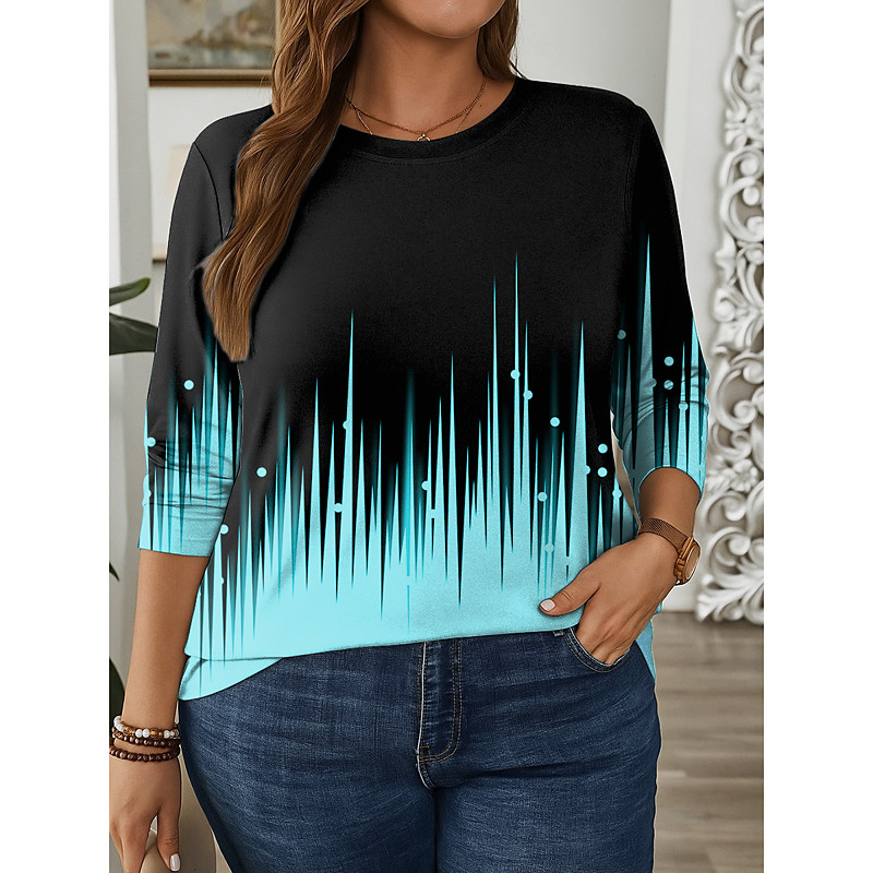 Women's Plus Size Tops T Shirt Ombre Geometry Print Long Sleeve Crew Neck Casual Daily Polyester Fall Winter White Yellow