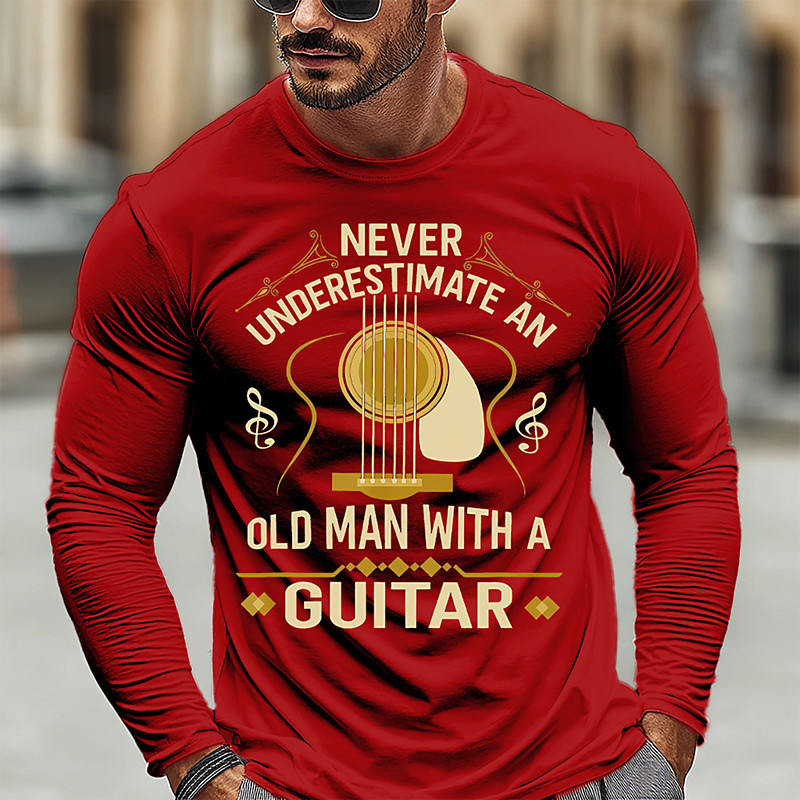 Men's Guitar Funny Slang T Shirt Long Sleeve T shirt 3D Print Crew Neck Shirt Fashion Daily Basic Casual Daily Street Blue Black Red Summer Spring Clothing Apparel S M L XL XXL XXXL