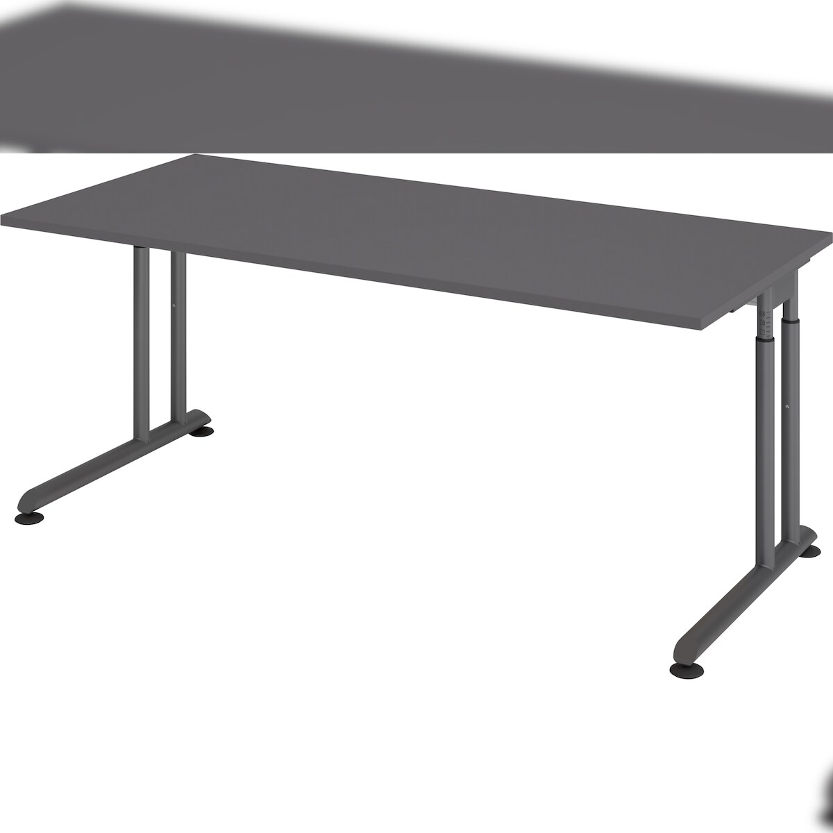 bümö höhenverstellbarer Schreibtisch Z-Serie 180x80 cm in graphit, Gestell in Graphit - großer PC Tisch für's Büro manuell höhenverstellbar,