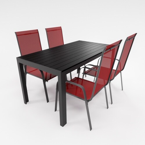 Lex Gartenmöbel Set Essgruppe Alu Tisch 5-tlg. 4x Stapelsessel Gartenset Sitzgruppe burgundrot : Burgundrot