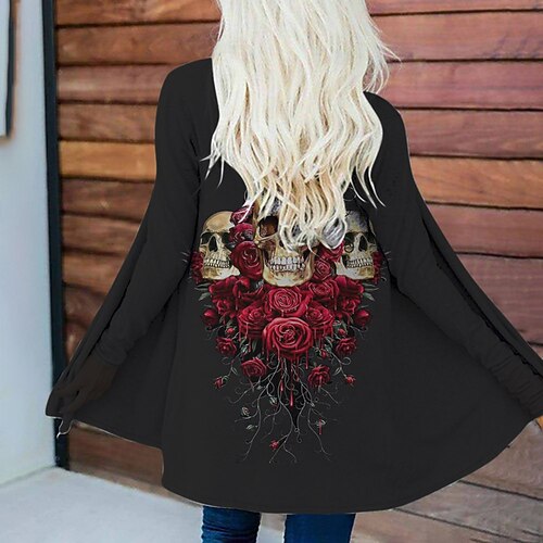Womens Casual Jacke Warm Bequem Totenköpfe Unregelmäßiger Saum Offene Front Elegant Vintage Modern Floral Straße Casual Athleisure Täglich Lange Kragenlose Lange Ärmel Oberbekleidung Grau Pink Schwarz