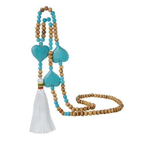 Lange Perlenquastenkette für Damen mit Sternanhänger, böhmischer Holzperlenschmuck für lässige Outfits, Strandbekleidung und Partys