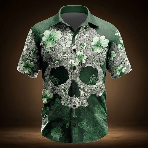 Festa di San Patrizio Per uomo Teschio Quadrifoglio Trifoglio Camicia Camicia con Bottoni Manica Corta Vintage Retrò Feste Ferie Estate Primavera Collo ripiegato Stampa 3D camicie con colletto Verde