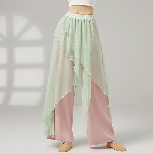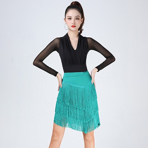 Balli latino-americani Gonne Nappa Con ruche Colore Puro Per donna Prestazioni Addestramento Manica lunga Alto Poliestere
