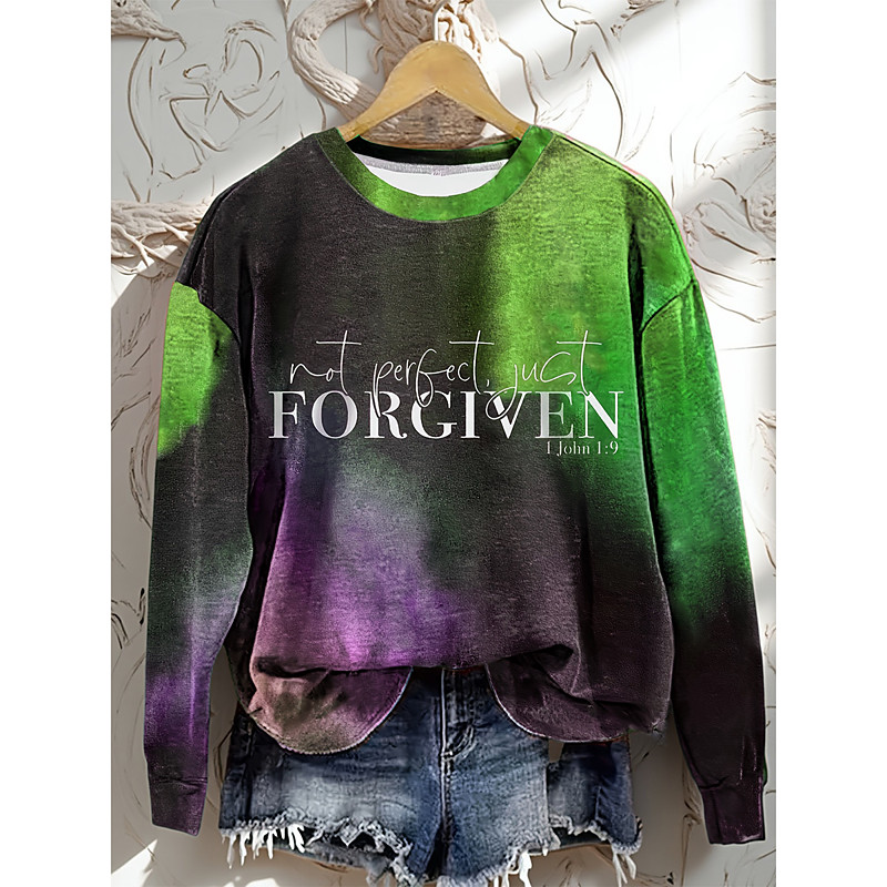 Women's Sweatshirts Graphic Letter Casual Long Sleeve Crew Neck Regular Tops Street Dailywear Casual Print Blue Red Purple Green Fall Winter