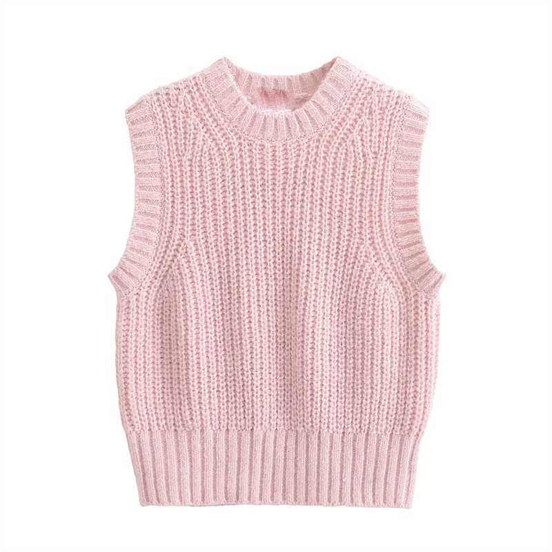 Women's Sweater Sweater Vest Pullover Elegant Fashion Cute Solid Color Crew Neck Knitted Sleeveless Regular Tops Knit Outdoor Work Daily Yellow Pink Spring Fall