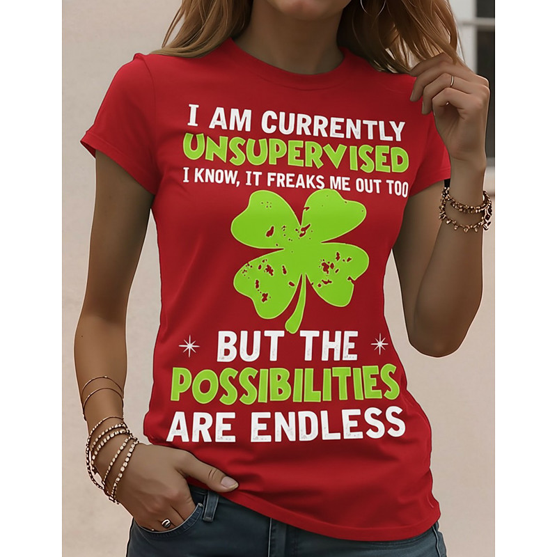 St. Patrick's Day Women's T Shirt Graphic Stylish Classic Casual Short Sleeve Crew Neck Round Neck Regular Tops Daily Print Blue Red Green Summer Spring Fall Winter
