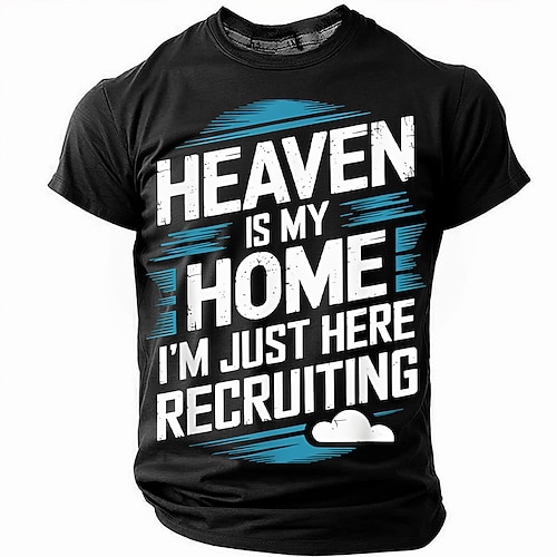 Herren T-Shirt 'Der Himmel ist mein Zuhause ich bin nur hier um zu rekrutieren' Grafisches Zitat inspiriernde Kurzarm Glaubensbotschaft